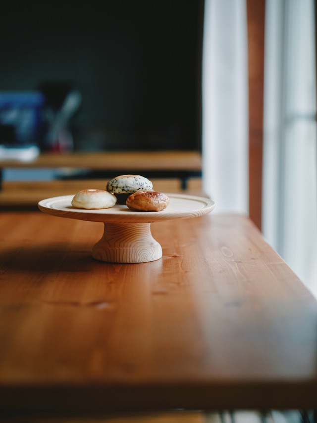 国産檜のケーキスタンドです。 丸太から手削りすることで、美しい木目を活かしました。 小さな葉節が見えるのも特徴的です。 ケーキや果物など、季節の食べ物を保管したり テーブルに彩りを与えてくれたりと、 主役級のケーキスタンドです。 ※こちらはワックスペーパーでの簡易包装となります。