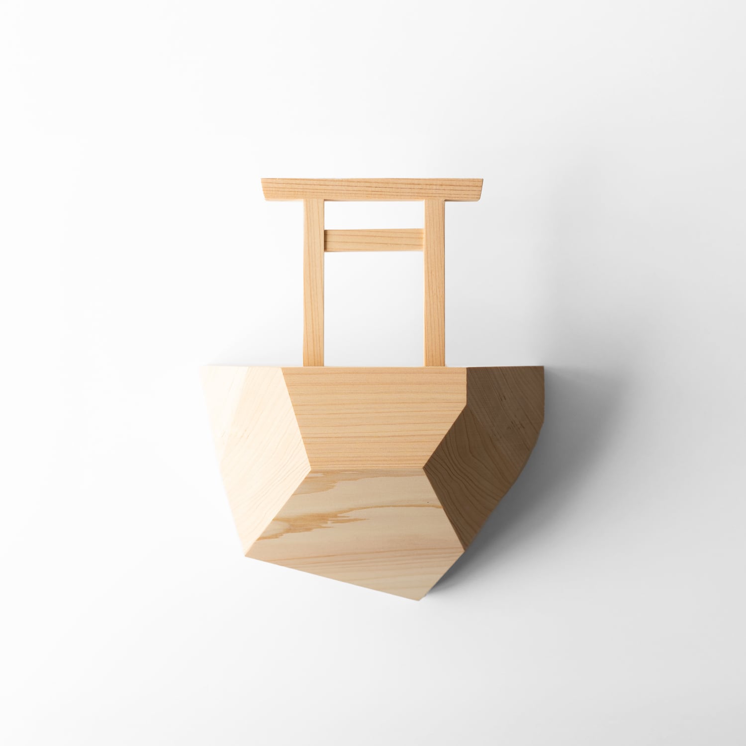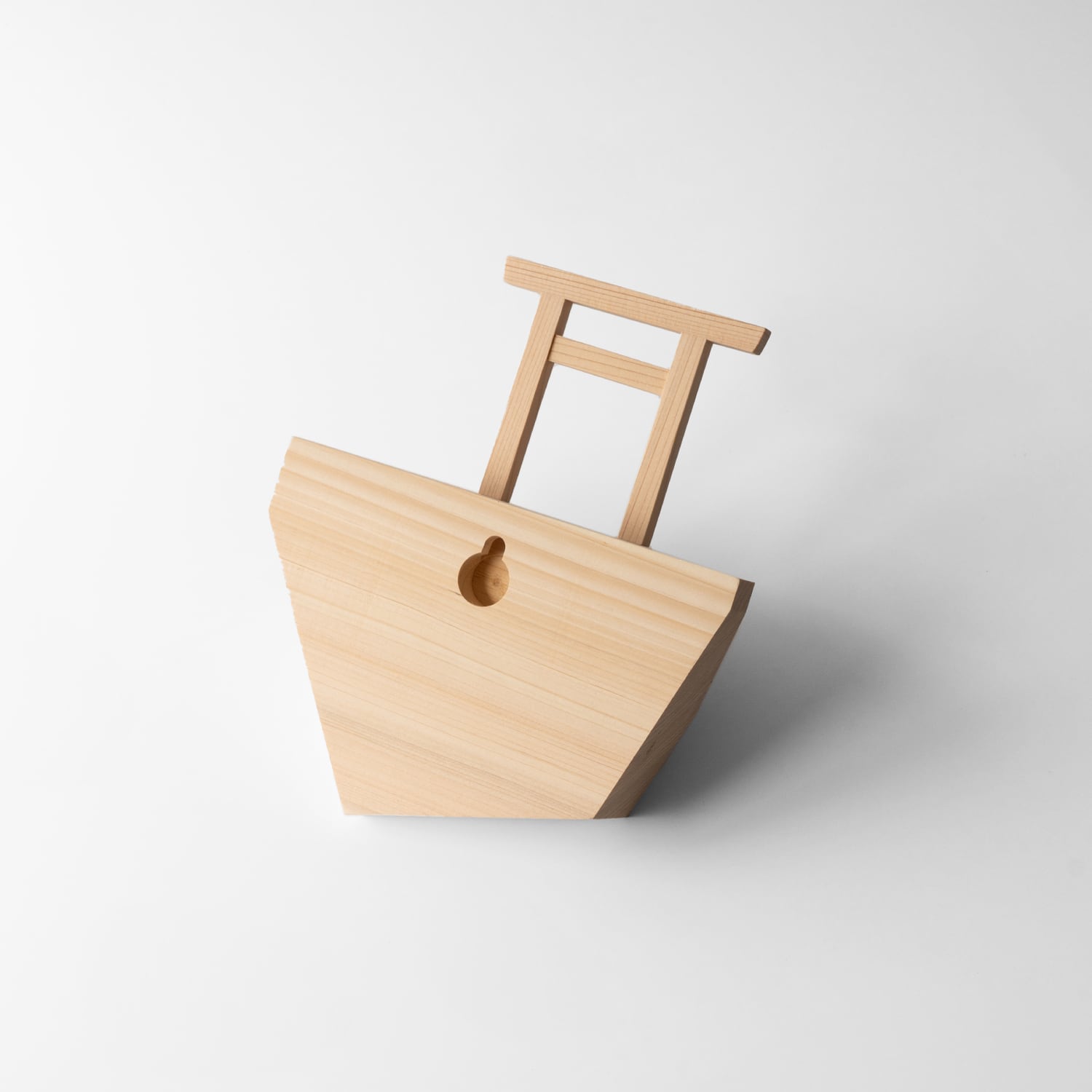 土台をアシンメトリーにカットし、檜の木目が織りなす豊かな表情を様々な角度から楽しむことができます。