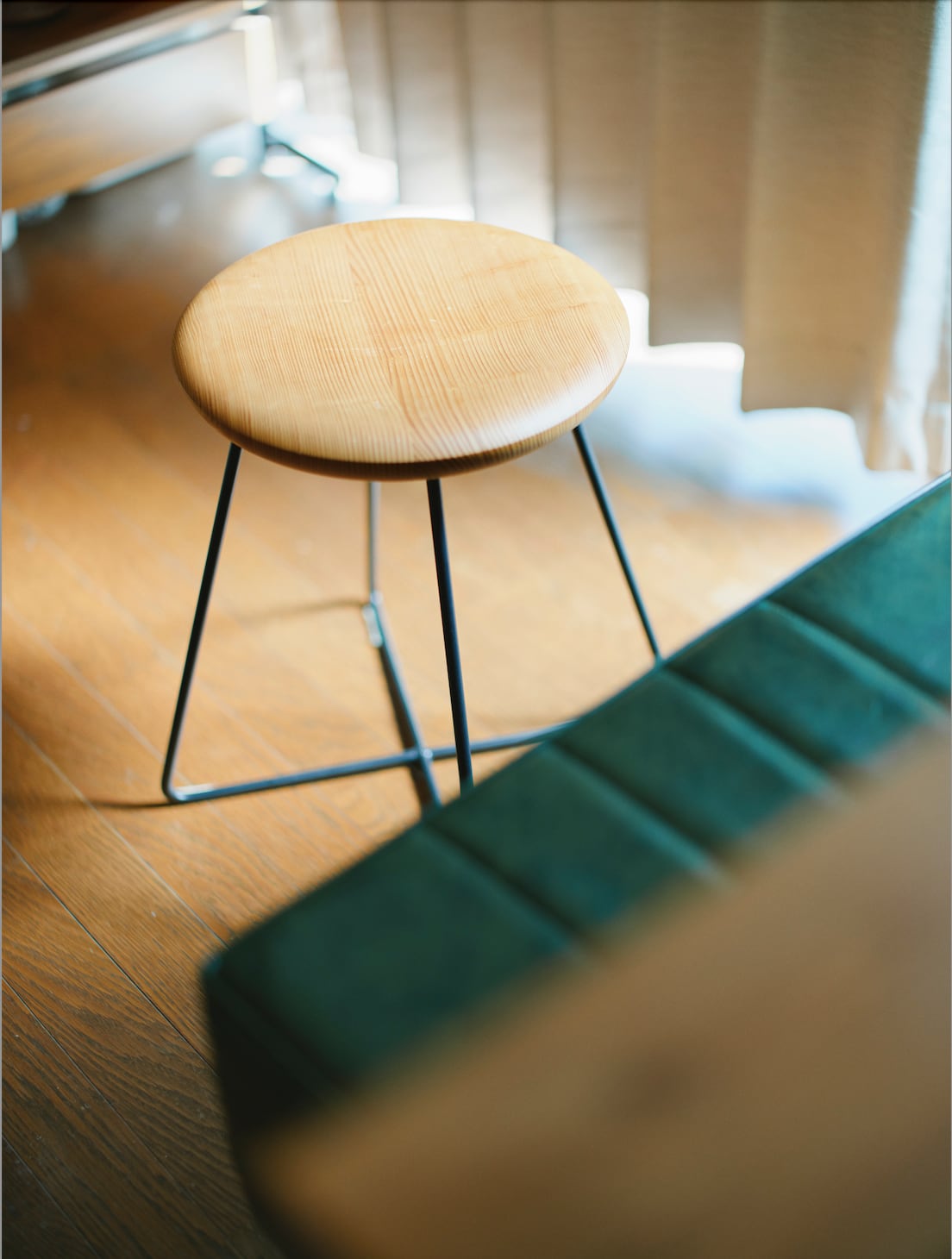 脚の部分は鉄を使用し、スタイリッシュでどこにでも馴染むデザインのスツールです。座面の中央部分はお尻にフィットするよう、緩やかにカーブしております。