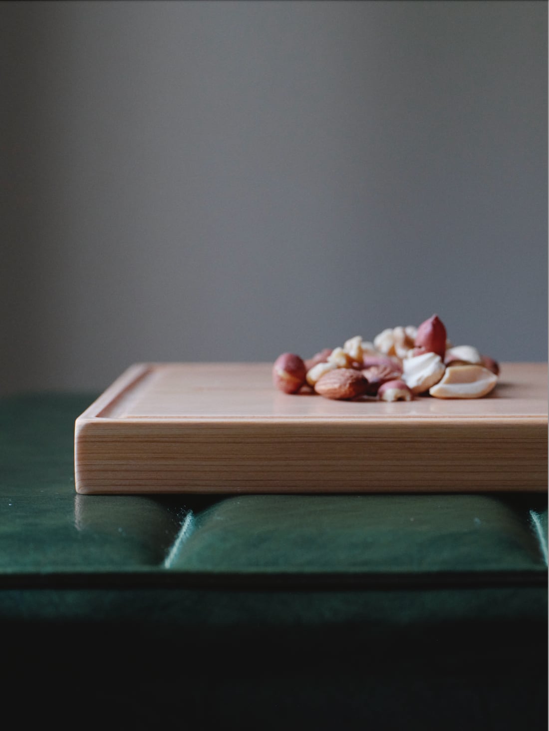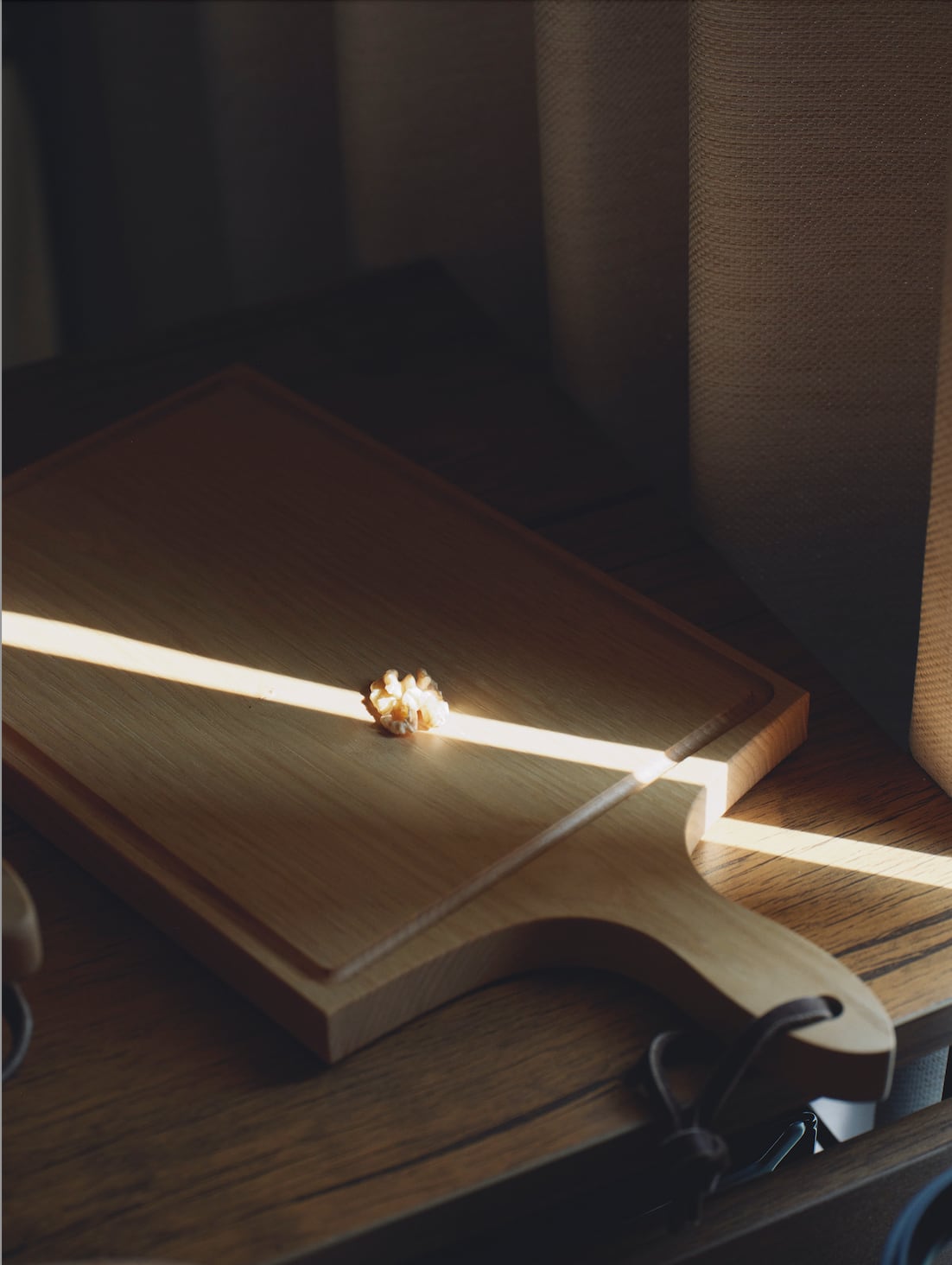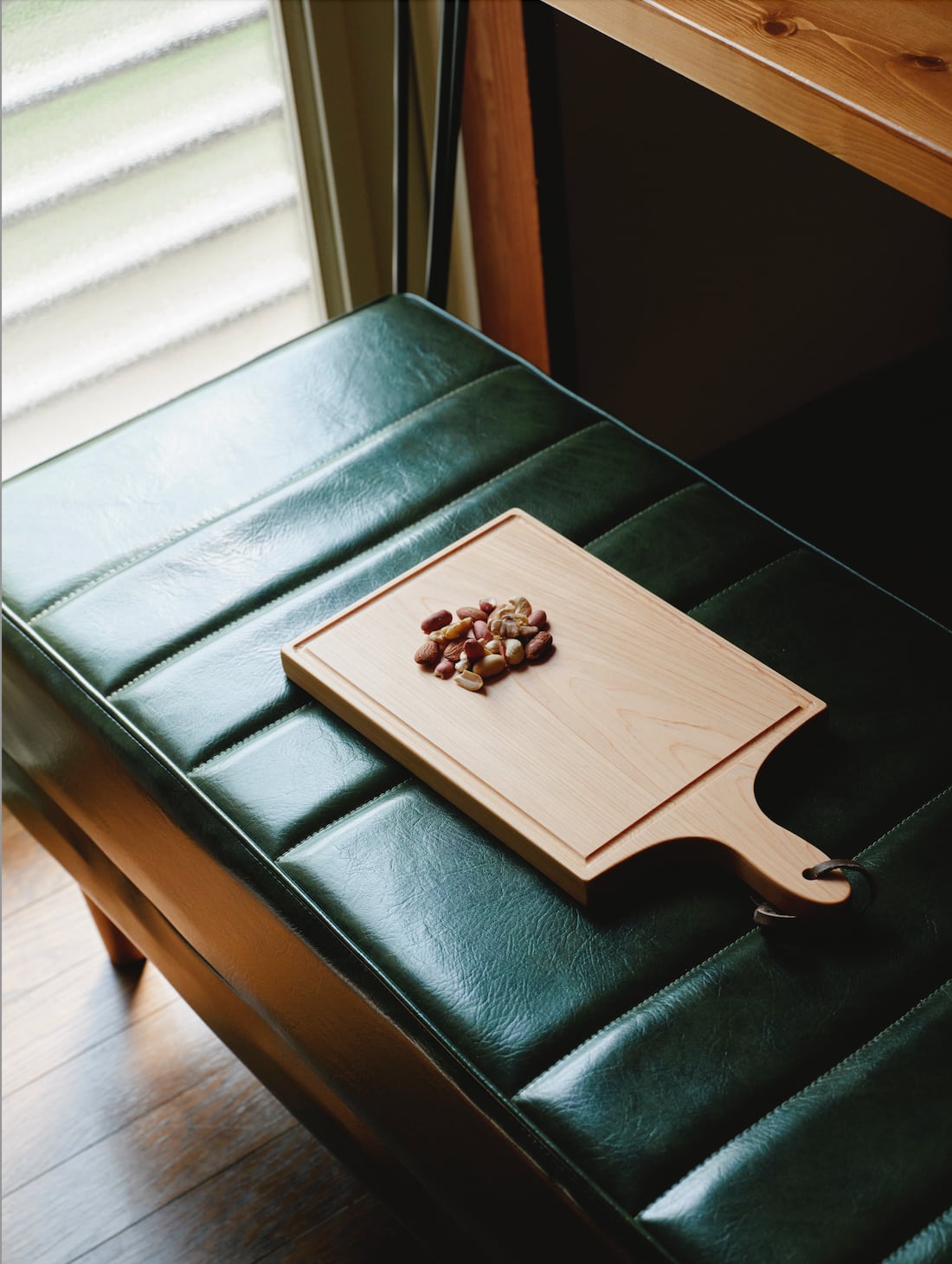 広いカッティング面と持ちやすいハンドル部分で少々重みのある食材もたっぷり載せて運べます。カットしてそのままテーブルに出しても良し、軽めの食事用プレートとしても良し、マルチに活躍するカッティングボード です。