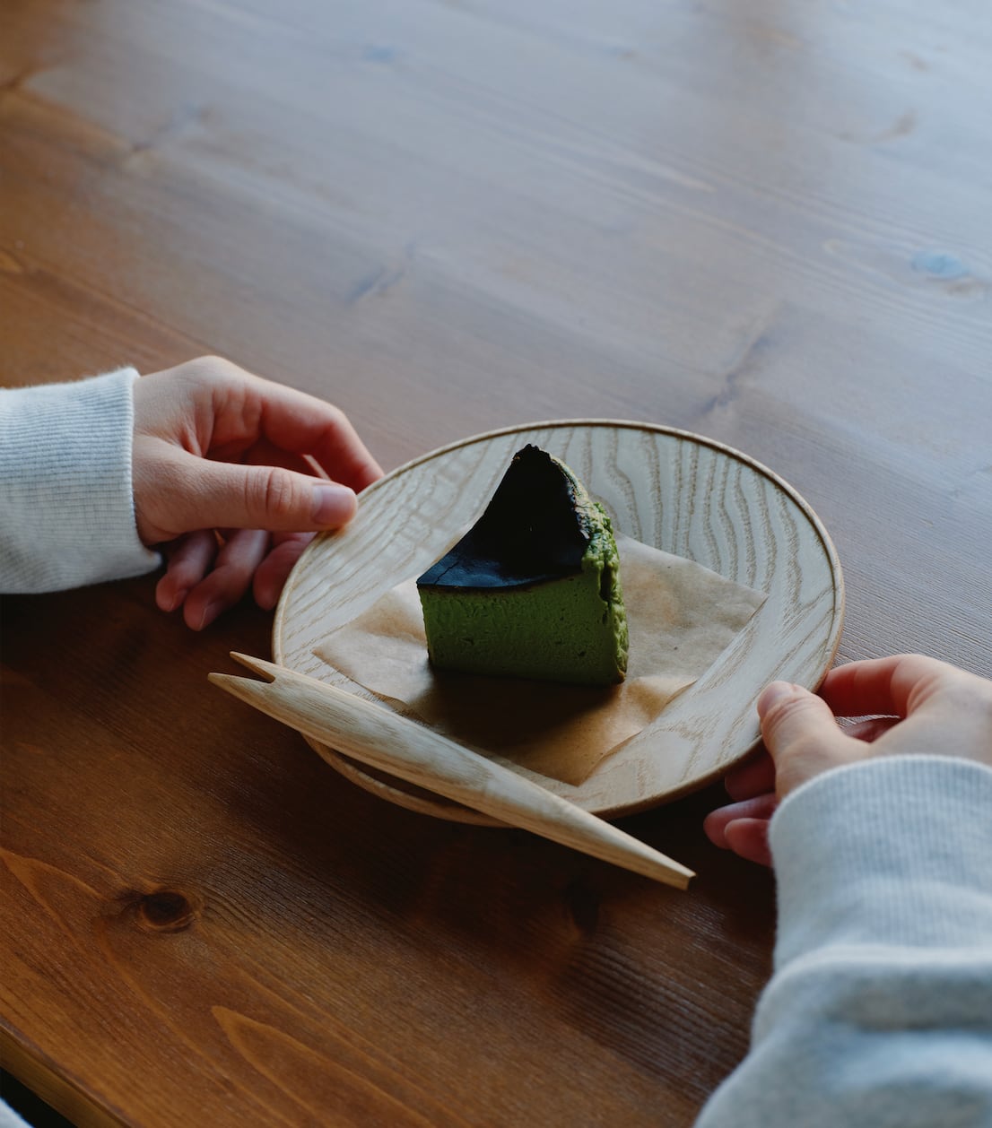 なだらかな形が手に馴染み、安定した形状は持ちやすくケーキにぴったりです。