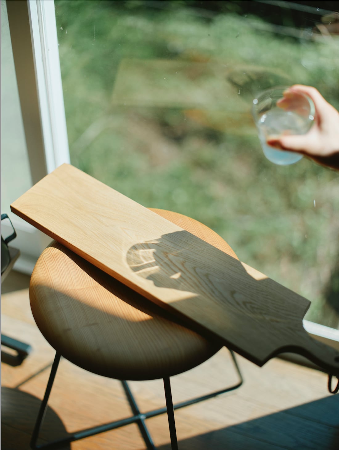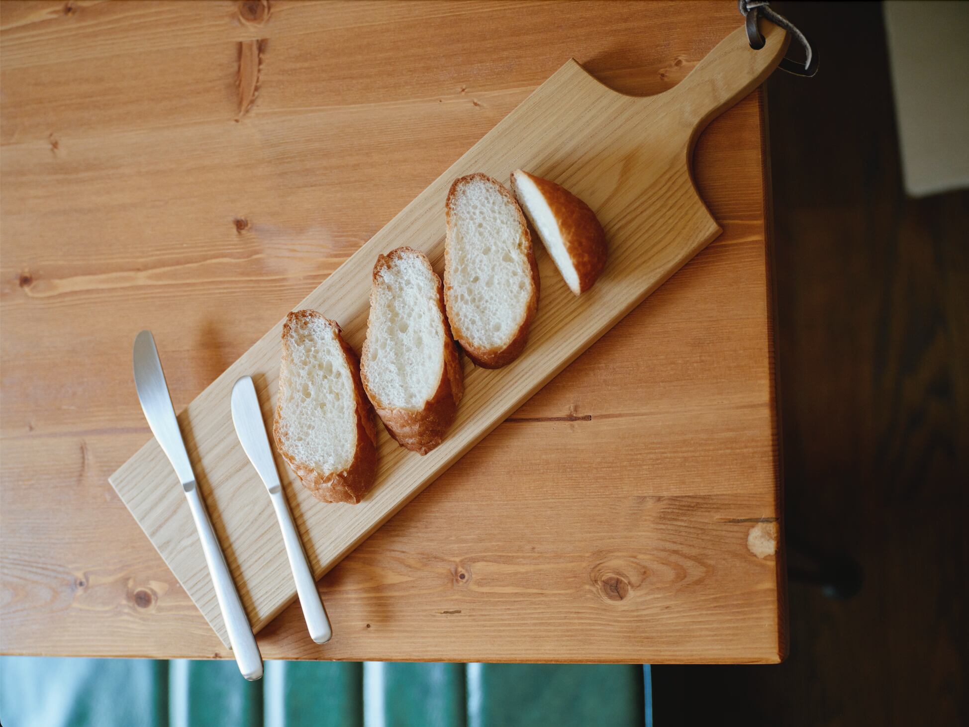栗の木は水気に強いため、昔から、お風呂や台所などの部材に使われてきました。カット部分の厚みがしっかりあるので、食材を切る際もしっかり安定します。